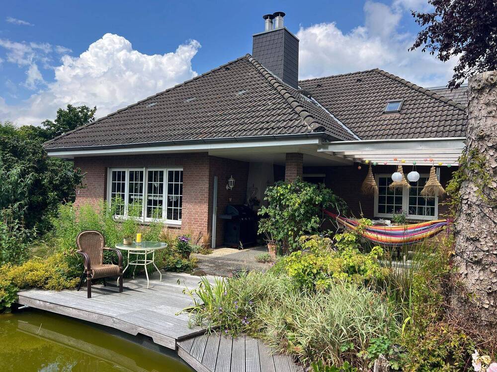 Mehr zum Angebot Charmantes Einfamilienhaus mit Keller, Einliegerwohnung, Teich und Doppelgarage: